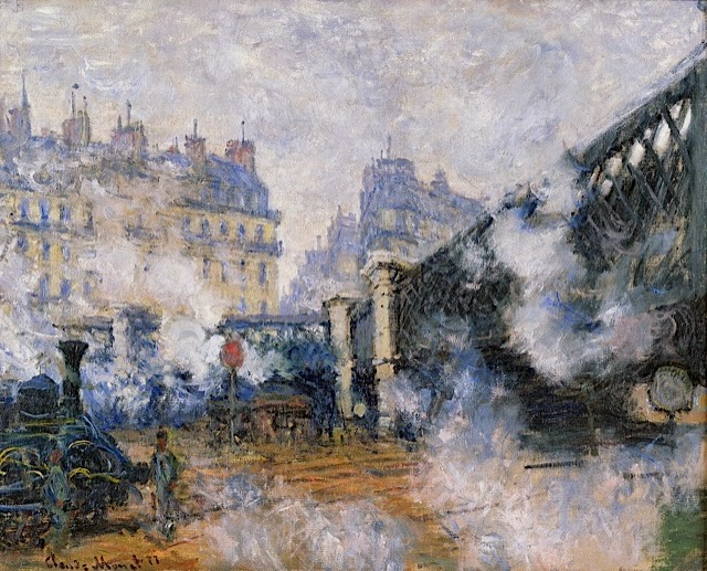 Au début du 19e siècle, le chemin de fer se développe en même temps que la Révolution industrielle naissante, engendrant une transformation du paysage. Trains et gares deviennent des sujets de prédilection pour les artistes. Avec son tableau intitulé « Pluie, vapeur, vitesse », Turner est l’un des premiers à s’intéresser à ce sujet moderne qui passionnera les peintres impressionnistes et en particulier, Claude Monet. En effet, en 1877, Monet peint sept vues de la gare Saint-Lazare qu’il expose ensemble suscitant l’étonnement ; Pissarro, Caillebotte, Manet se sont également inspirés de la gare Saint-Lazare. Le point de vue de Daumier est différent ; il dépeint les voyageurs dans un wagon de troisième classe, scrutant leurs attitudes et leurs expressions variées. Dans un registre plus fantastique, le peintre surréaliste belge Paul Delvaux a fait des gares et des trains, son univers favori.